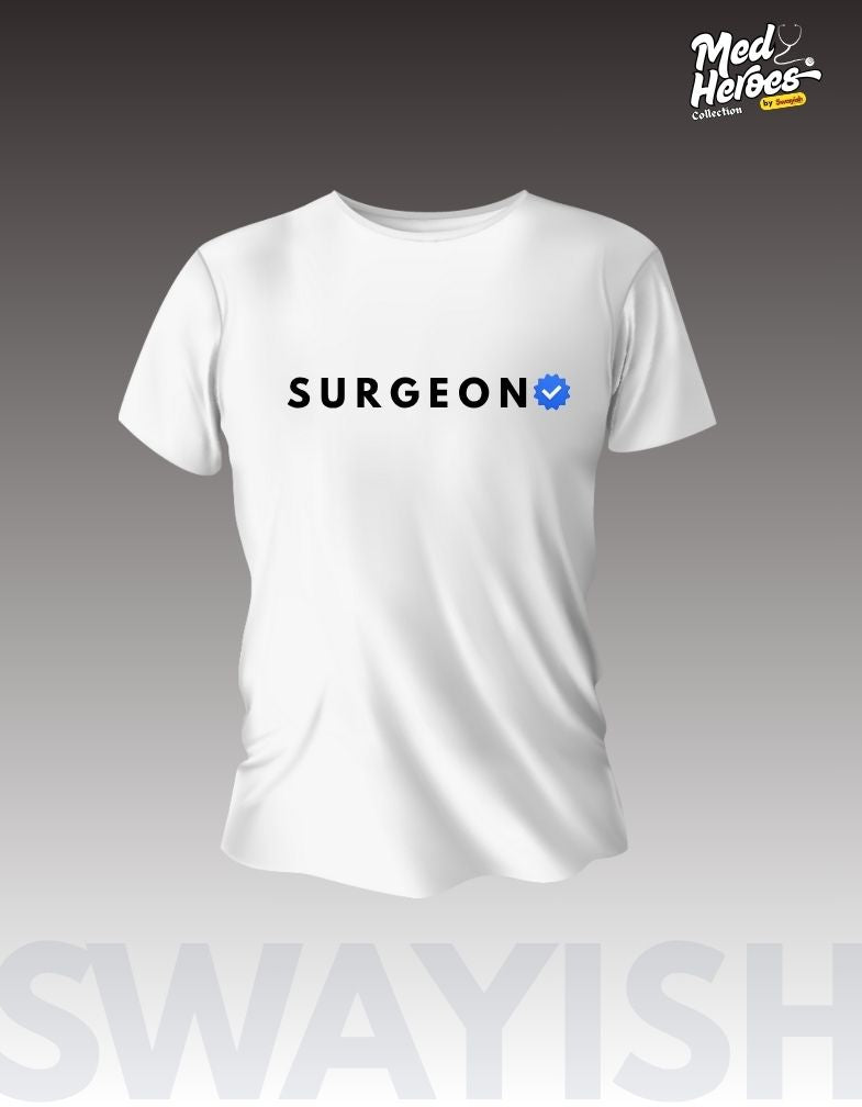 Crafted from a premium blend of 95% cotton and 5% elastane, this unisex white t-shirt offers a soft, breathable feel with natural stretch for enhanced comfort and flexibility. Its tailored silhouette provides a clean, structured look suitable for all body types. Designed specifically for surgeons and doctors, it is perfect for daily wear, travel, or layering, combining ease of movement with a professional appearance. Easy to care for, it is machine washable and durable, making it a practical choice for medical professionals.
